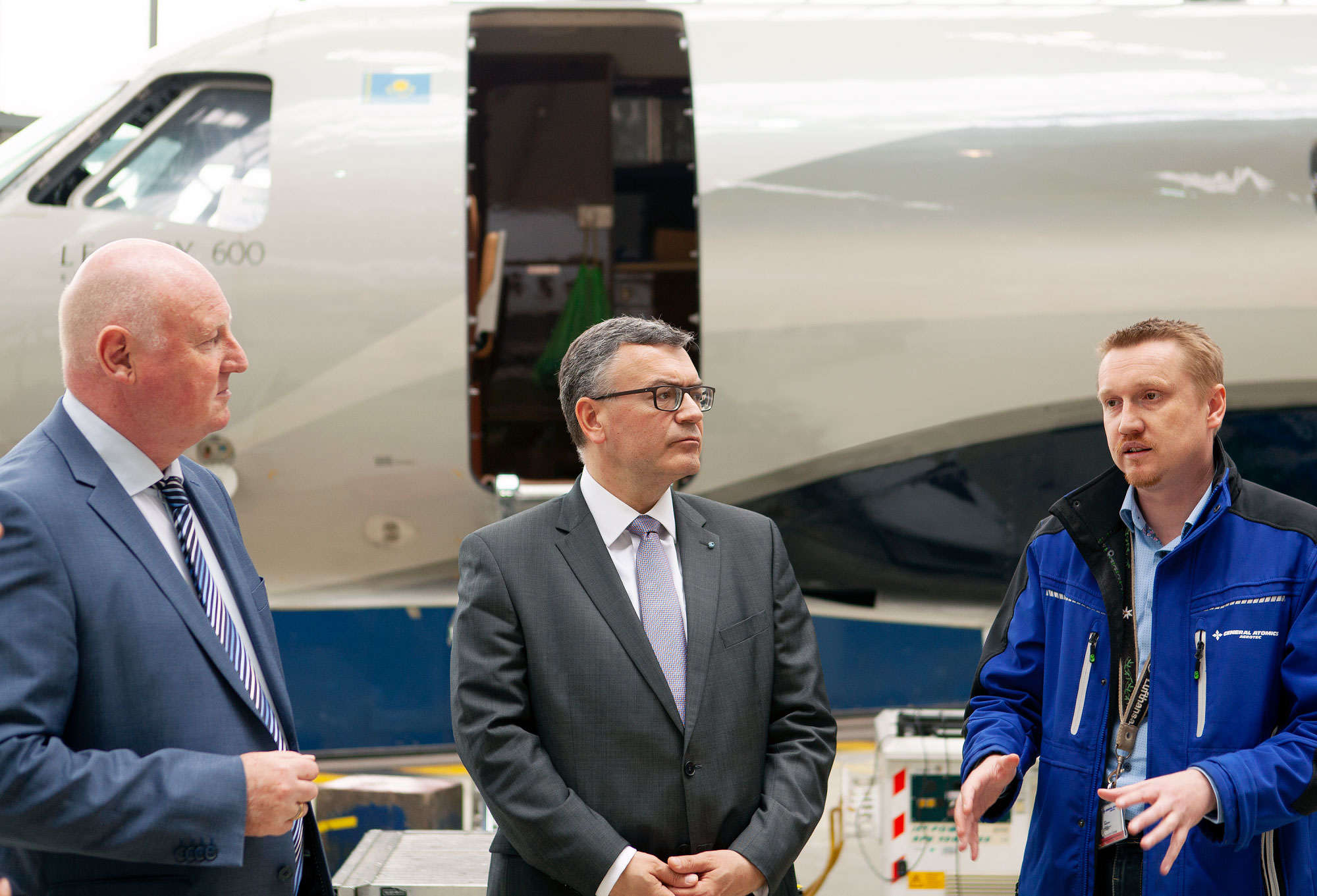 v.l.n.r.: Harald Robl, Geschäftsführer General Atomics Europe GmbH | Dr. Florian Herrmann, Leiter der Bayerischen Staatskanzlei und Staatsministers für Bundesangelegenheiten und Medien Dr. Florian Herrmann (CSU) | Jürgen Stadlmeir, zust. Fertigungsleiter General Atomics AeroTec Systems GmbH